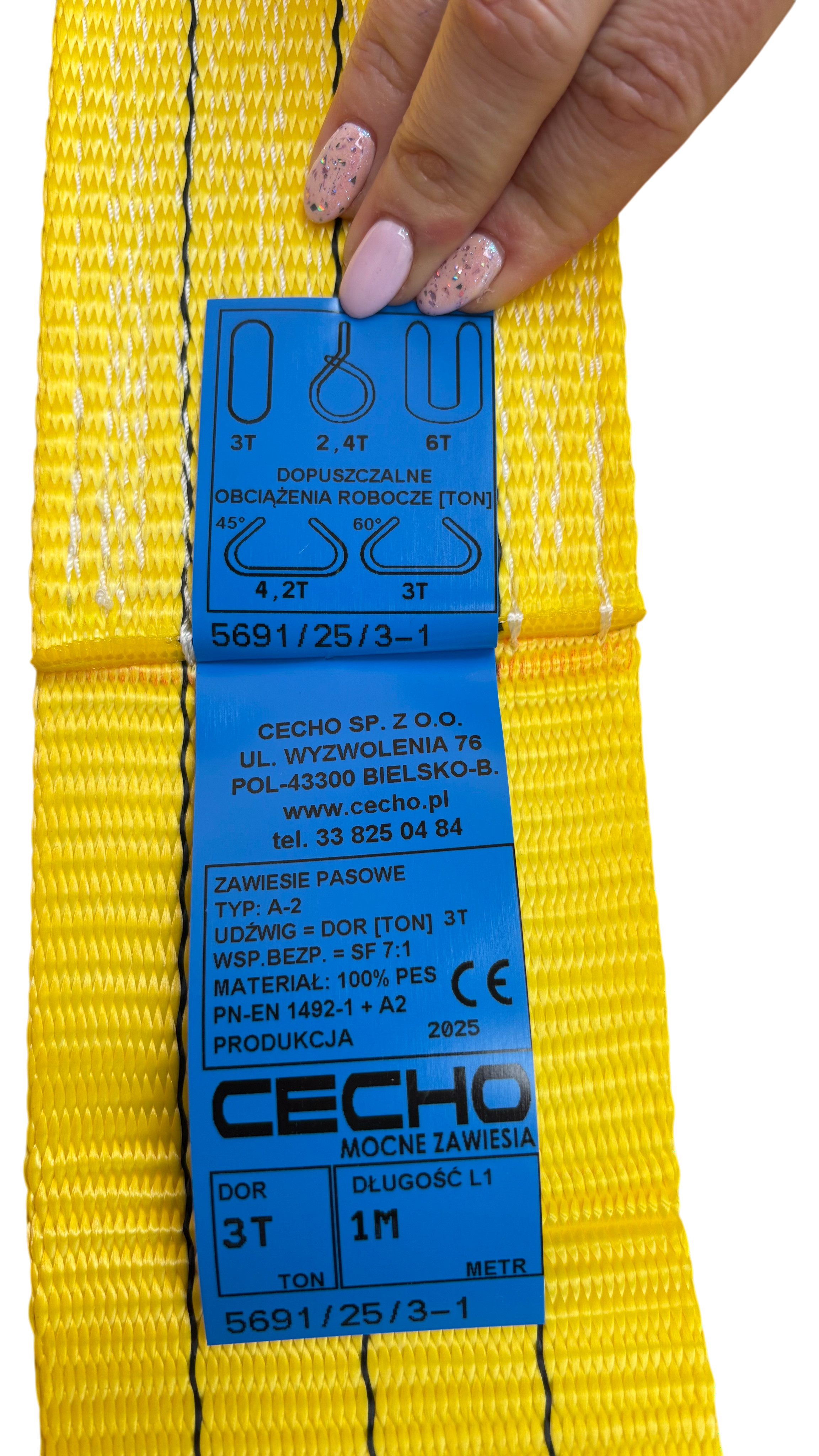 Zawiesie pasowe pętlowe 3t, typ A-2 (standard) szerokość taśmy 90mm