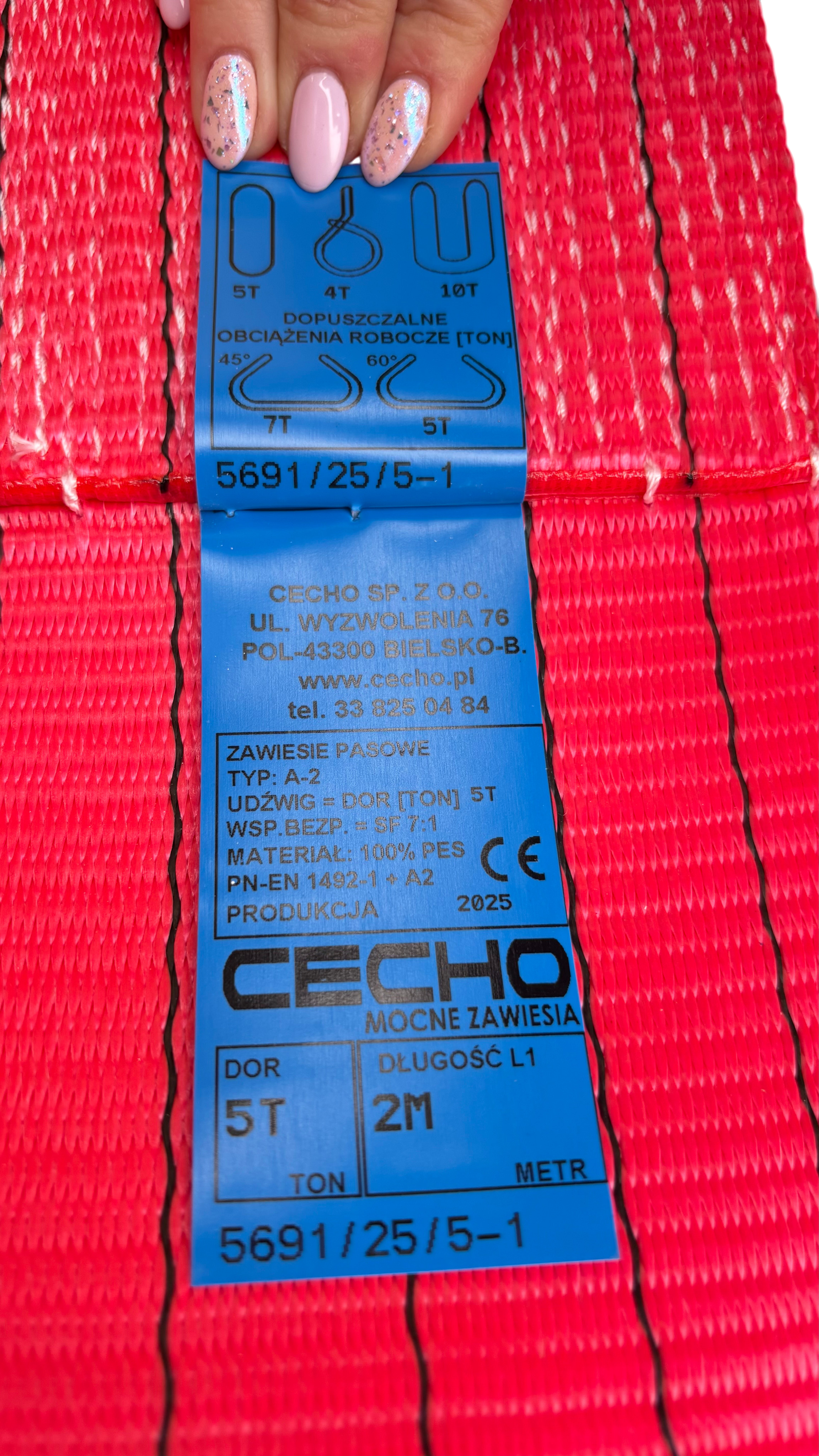 Zawiesie pasowe pętlowe 5t, typ A-2 (standard) szerokość taśmy 150mm